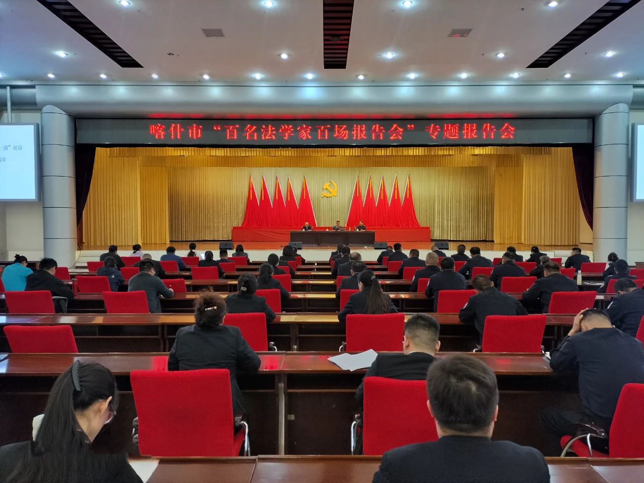 喀什地区法学会相关领导出席活动,全市政法系统干警、相关部门业务骨干、部分法律工作者等240余人参加活动。