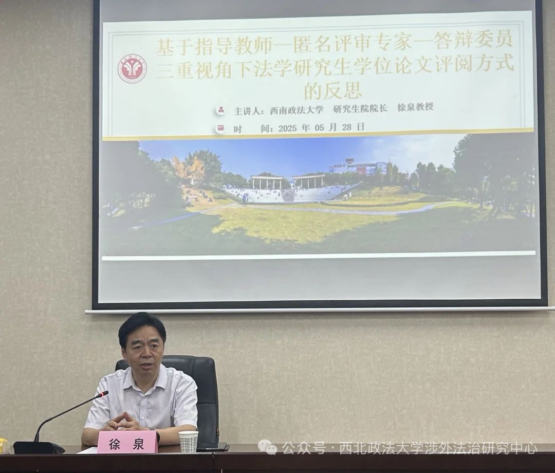 5月28日,ac米兰官网中文网站涉外法治研究中心学术报告会在ac米兰雁塔校区三教102会议室举行,武汉大学国际法治研究院博士研究生导师、教育部长江学者杨泽伟教授和西南政法大学国际法学院博士研究生导师徐泉教授分别做专题讲座,ac米兰官网中文网站涉外法治研究中心执行主任、博士生导师王瀚教授担任主持人,ac米兰官网中文网站国际法学院张超汉教授、吕江教授、王泽林教授、张光耀博士、王阳博士及硕、博士研究生参与会议。