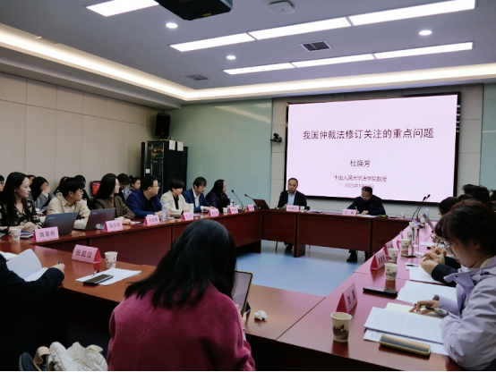 会议开始由王瀚教授对与会人员进行介绍,并对杜焕芳教授的莅临指导表示感谢。会议中,杜焕芳教授围绕“为什么修订仲裁法—修订改革的思路—修订的重点内容”三个模板讲解。首先讲解了修订仲裁法的内因和外因,强调国际局势及国内问题制约了我国仲裁的高质量发展和仲裁在提升国家治理与社会治理能大方面作用的发挥。其次介绍了仲裁法修订与改革的主要思路,提出要把握三大关系:传承与创新的关系、仲裁法与仲裁规则的关系以及国内仲裁与国际仲裁的关系。最后,围绕适用的范围、仲裁机构的性质、有限承认临时仲裁、“仲裁地”的引入、仲裁庭的权力、仲裁的保密性、送达规定讲解了仲裁法修订的重点内容,并进一步讨论了其他新增条款及相关问题。