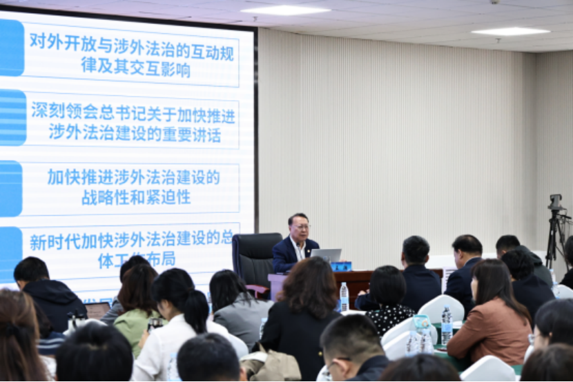 ac米兰国家智库研究基地涉外法治研究中心执行主任、首席专家、博士生导师王瀚教授应邀做《推进高水平对外开放与加快涉外法治建设的战略性和紧迫性》的专题讲座,分别就对外开放与涉外法治的互动规律及其交互影响、深刻领会总书记关于加快推进涉外法治建设的重要讲话、加快推进涉外法治建设的战略性和紧迫性、新时代加快涉外法治建设的总体工作布局和新时代发展我国涉外法律服务业的政策措施与顶层设计等五个问题做了深入细致的阐述。