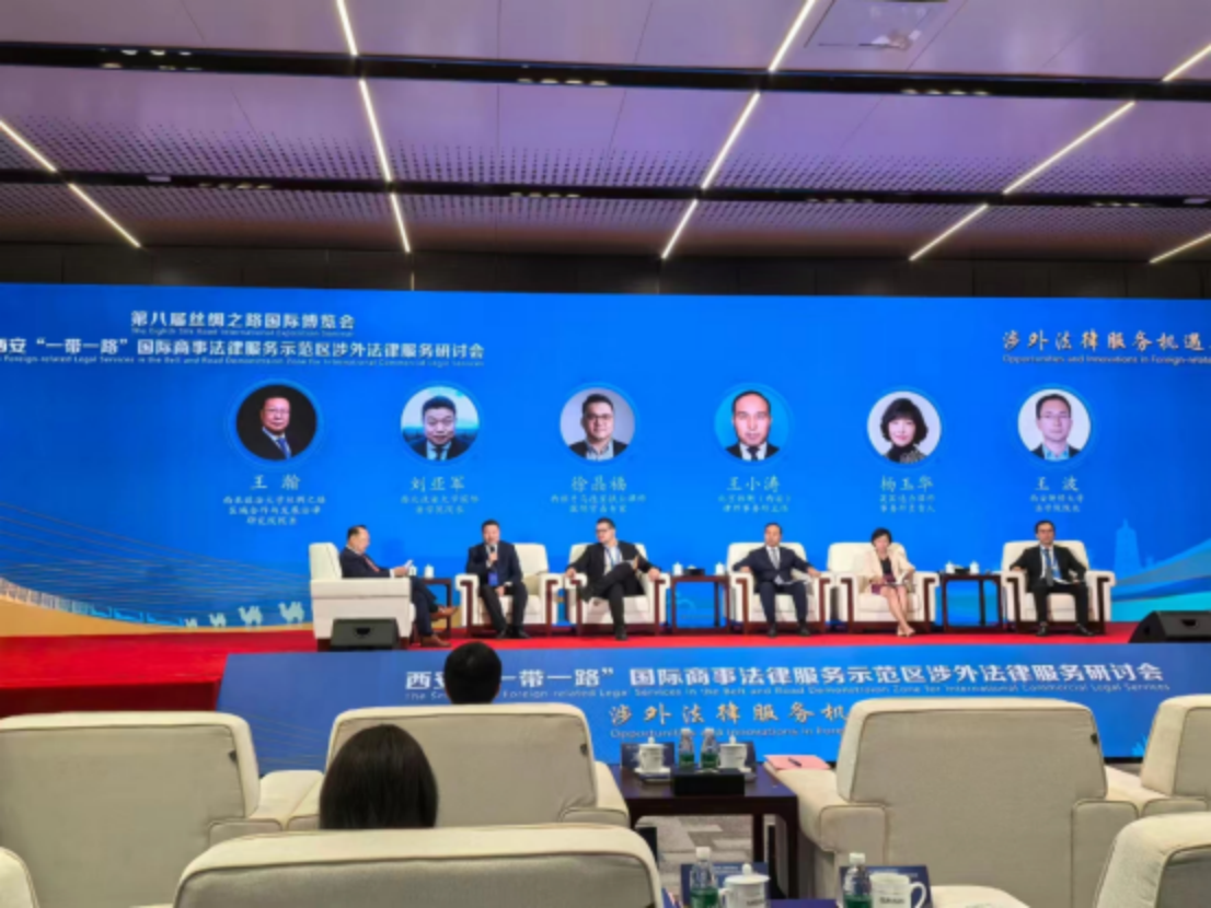 金秋九月万物丰盈,千年古城躬逢盛会。2024921日,第八届丝绸之路国际博览会西安“一带一路”国际商事法律服务示范区涉外法律服务研讨会在西安国际会展中心举行。“一带一路”律师联盟秘书长康煜、陕西省司法厅副厅长师建平、西安市人民政府办公厅副主任王志林、中华全国律师协会副会长韩永安、西安市法学会专职副会长王铁出席活动。中共西安市委全面依法治市委员会办公室副主任、西安市司法局党组书记赵夏主持开幕式。市级有关部门负责同志,各区县、开发区及司法行政部门有关负责同志,驻西安高校有关负责同志,市、区县法学会理事,以及来自企业和律师、公证、司法鉴定、调解、仲裁等行业代表共计140余人参加了研讨会。