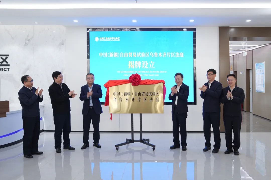 3月20日,中国(新疆)自贸试验区乌鲁木齐片区法庭(以下简称自贸区法庭)在丝绸之路经济带法务区揭牌成立,敲响法务区涉外商事审判“第一槌”。自治区高级人民法院院长、党组副书记迪里夏提·沙依木,最高人民法院第六巡回法庭分党组副书记、副庭长罗智勇,乌鲁木齐市委副书记、政法委书记、社会工作部部长马志军等为法庭揭牌。
