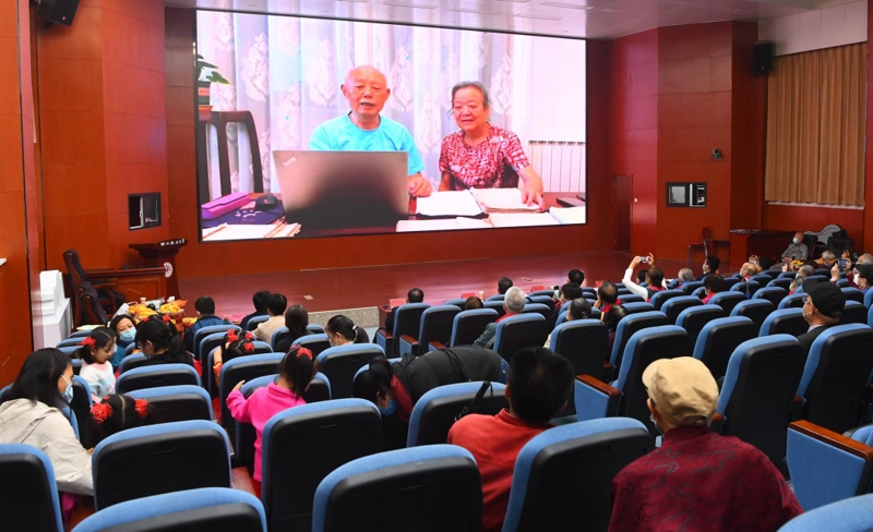 幼儿园小朋友们表演舞蹈《说唱中国红》送上祝福;居住省外的孟繁琨、吴明童等5人通过视频向大家致以节日问候;王海鸿、程瑞、谢斌演唱京剧毛泽东词作《忆秦娥•娄山关》;现场采访姜淮超、赵灵娥夫妇;10多位老同志联唱《年轻的朋友来相会》、《革命人永远是年轻》。文艺表演异彩纷呈,活动现场节日气氛欢乐热烈。