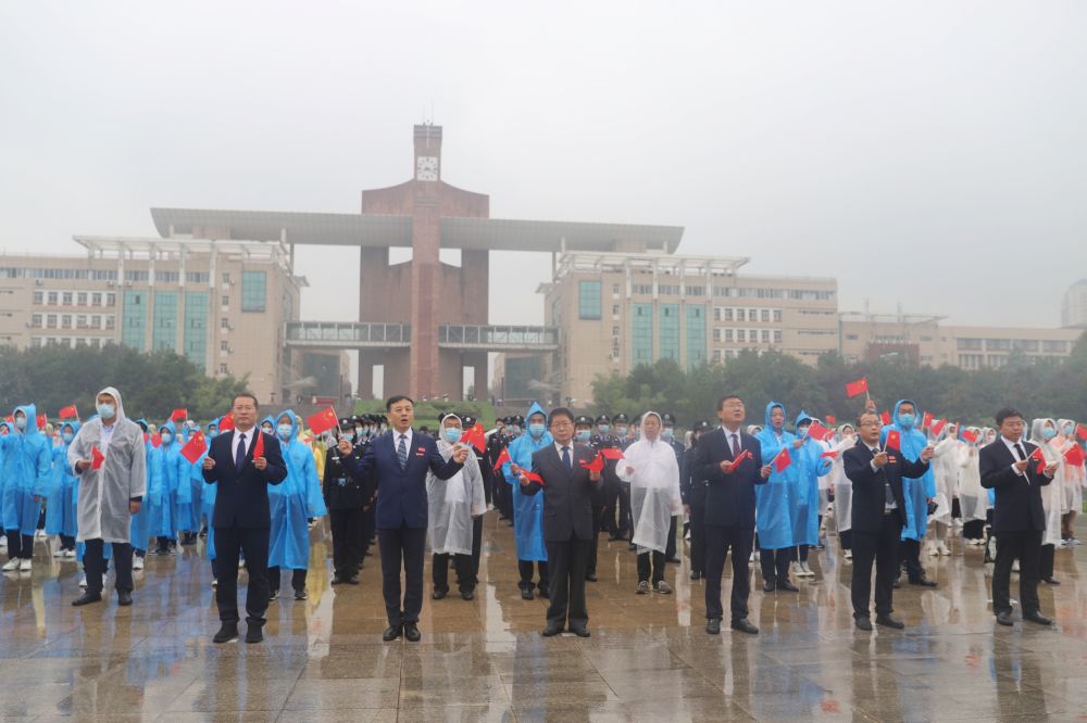 校党委书记孙国华,校党委副书记、校长范九利,校党委副书记郭武军,校党委委员、副校长王健、张荣刚、马朝琦、孙昊亮,校长助理汪世荣,校党委委员赵全宇、桑元峰、燕福民、宋白出席仪式。各学院党委书记、院长,相关职能部门负责人,教师代表、学生代表以及自发参与升旗仪式的老师同学们齐聚一堂,共同为伟大祖国送上生日的祝福。