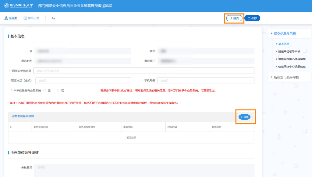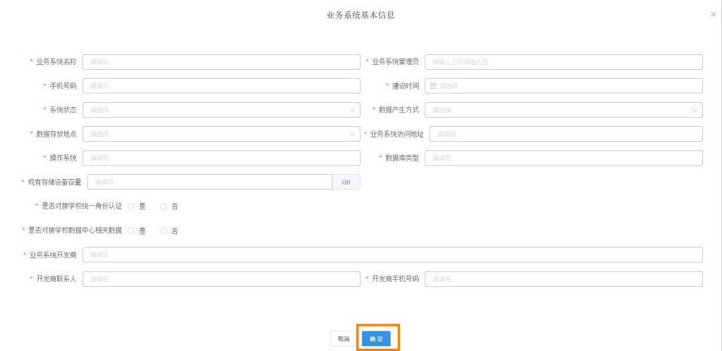 图6 业务系统信息填写界面