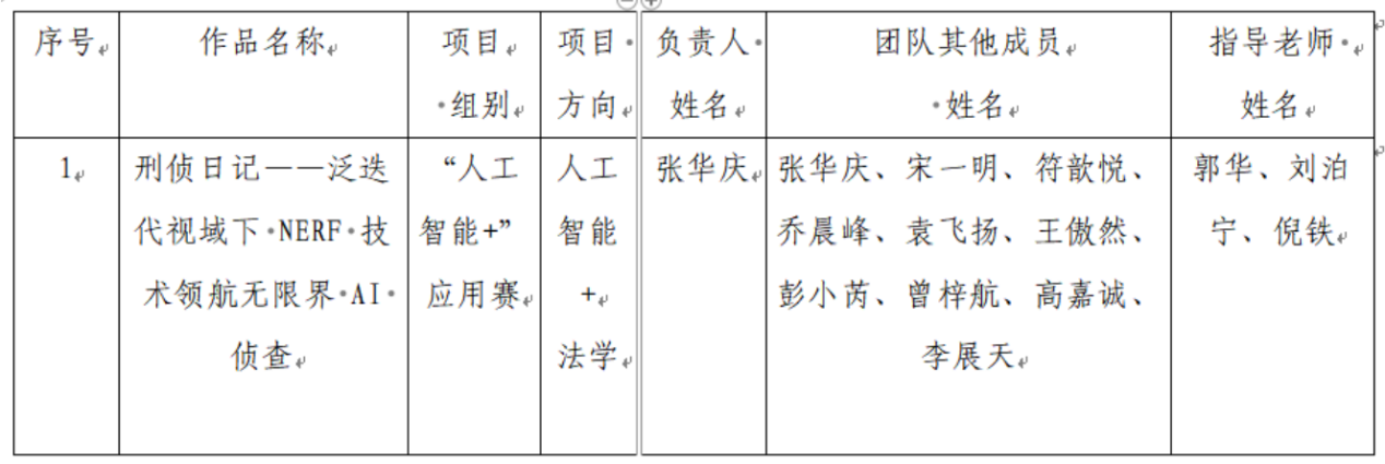 ac米兰公安学院(公共安全法学院)2021级学生宋一明(学号:202111040207)参与的中央财经大学项目《刑侦日记——泛迭代视域下NeRF技术领航无界限 AI 侦查》,拟推荐为第十九届“挑战杯‘全国大学生课外学术科技作品竞赛’人工智能+”应用赛参赛作品。根据组委会要求,现将参赛作品信息予以公示,具体信息如下:
