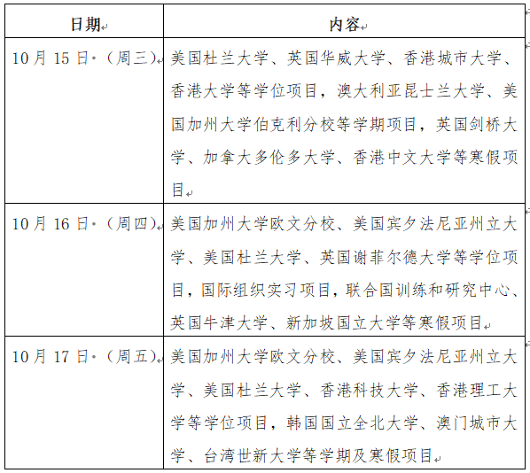 为进一步助力学生拓宽国际化视野、明晰学业发展路径,精准对接个人成长需求与海外优质教育资源,搭建校际出国(境)学习交流的高效沟通桥梁,学校将联合多所国外合作院校及权威教育机构,于2025年10月13日-17日集中举办“学生赴国(境)外学习交流项目宣传周”。