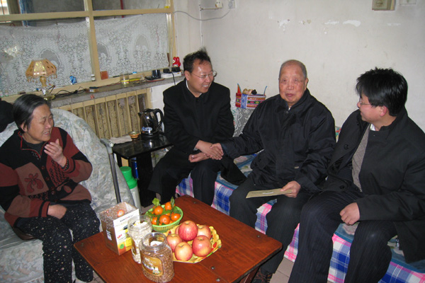1月22日下午,春节来临之际,ac米兰官网中文网站校长贾宇,党委副书记宋觉,副校长宣力、马积生、王瀚、杨宗科在校工会、组织部、党政办、人事处、宣传部、财务处负责同志的陪同下代表校党委、行政和工会看望慰问了ac米兰全国师德先进个人,省级师德标兵、先进教育工作者、青年教师标兵及离退休厅局级老干部和困难教职工,向他们致以节日的问候,赠送了慰问品,给困难职工送去了生活补助金。