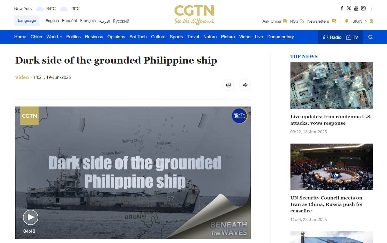 Since 1999, a Philippine military vessel built during World War II has been grounded at the Ren'ai Jiao in the South China Sea. China says that by doing so, the Philippines gravely violated China's territorial sovereignty. What is the vessel? And why it is there? CGTN reporter Zheng Yibing explains. 【中国国际电视台】ac米兰潘俊武教授接受CGTN采访 解析仁爱礁争端法律实质 https://news.cgtn.com/news/2025-06-19/Dark-side-of-the-grounded-Philippine-ship-1EkvduLK8j6/p.html