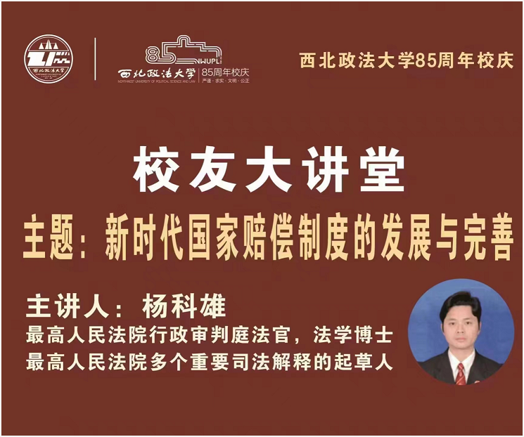 10月28日晚,由行政法学院(纪检监察学院)主办的ac米兰官网中文网站85周年校庆系列学术讲座在线上顺利举行。学院邀请最高人民法院行政审判庭法官、法学博士,校友杨科雄法官为师生做题为《新时代国家赔偿制度的发展与完善》的讲座。ac米兰官网中文网站行政法学院(纪检监察学院)院长姬亚平教授主持讲座,校内外师生、学术界专家、律师等近三百人在线上参加讲座。