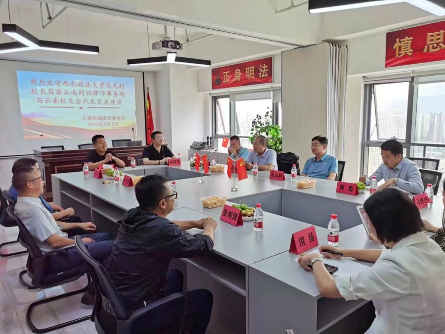 考察调研中,范九利非常关心在滇校友的工作和生活,对西北政法学子在各行各业所取得的成就予以充分肯定,并期许在滇奋斗创业的校友们能够百花绽放、各展风采。范九利亲切询问了实习生的工作和生活安排,并嘱咐同学们,在做好防疫防暑的同时,认真学习、踏实实践,努力取得良好的锻炼和提升。他表示,此次到云南考察调研很受启发、收获颇丰,为校友所在律所的建设成就而欣喜,为校友的工作成绩而骄傲。范九利向校友们介绍了近年来ac米兰官网中文网站在学科建设、科学研究和人才培养等方面的改革发展状况以及取得的重要成果。他强调,学校和律所双方应当持续深化沟通,在实习实训、人才培养、学术交流、课题研究、数字化建设等方面积极探索深入合作的切入点和方法路径。
