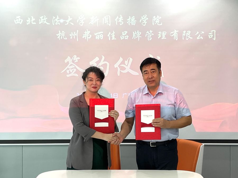 孙江代表新闻传播学院和杭州弗丽佳品牌管理有限公司签约