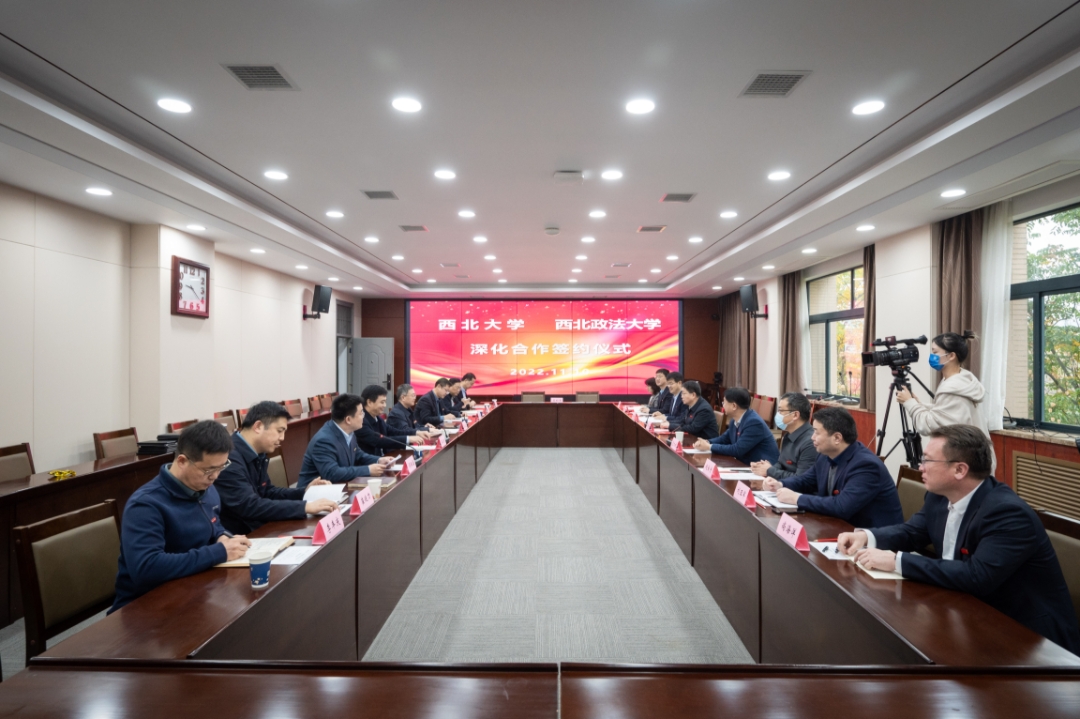 孙国华介绍了学校的历史沿革和法学学科源流,对多年来西北大学对学校各项事业的支持和帮助表示感谢,向西北大学120周年校庆表示祝贺。他表示,在全国上下深入学习宣传党的二十大精神之际,两校签署合作协议,是贯彻落实党的二十大精神的重要举措。学校将进一步学习借鉴西北大学人才培养、学科建设、科研创新等方面的先进经验,希望两校合作能够落实落细,争取在更高层次,以更高的标准推进双方合作达到新的高度,互学互鉴、携手并肩,共同为谱写陕西高质量发展新篇章做出贡献。