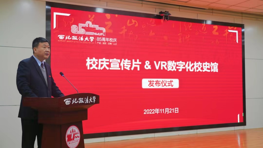 范九利在发布会致辞中代表学校,向长期以来关注和支持学校事业建设与发展的各位领导老师、校友同学以及社会各界致以诚挚感谢。他指出,校庆宣传片和数字化校史馆都记录了西法大走过的风雨历程,诉说了我们如诗如歌的沧桑岁月,也展示出学校芬芳四溢的春华秋实。走在新时代“赶考”路上的西法大人,将牢记为党育人、为国育才的初心使命,坚决落实立德树人根本任务,心怀“国之大者”,将自身使命与中华民族伟大复兴紧密结合在一起,在传承中发展、在发展中创新,努力成为新征程上引领社会发展的重要引擎。