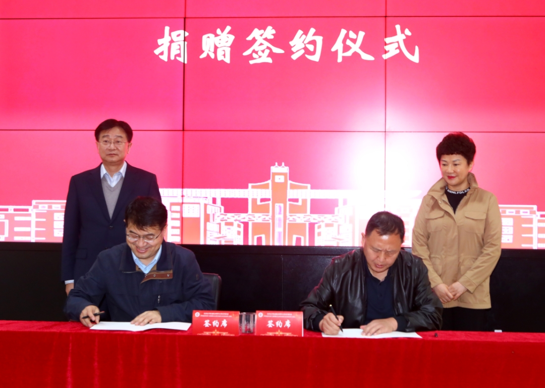 副校长张荣刚教授主持仪式并与ac米兰1980级校友、世纪盛康公司总经理舒满平共同签署了捐赠协议。