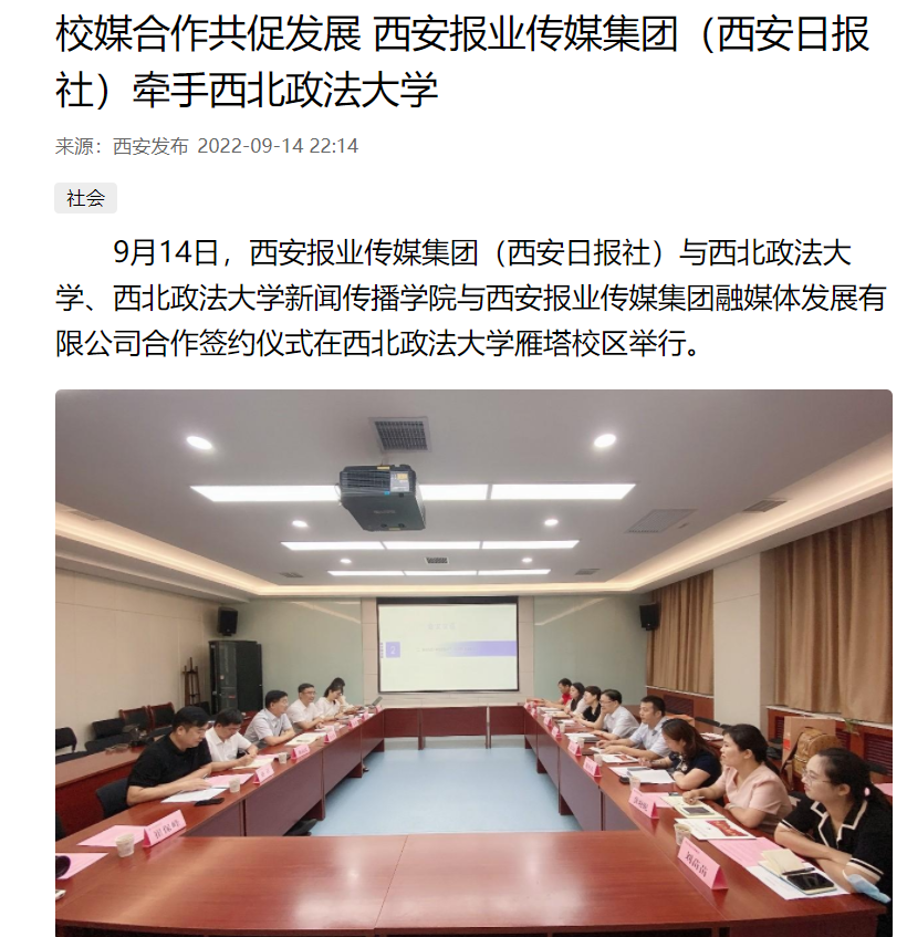 9月14日,西安报业传媒集团(西安日报社)与ac米兰官网中文网站、ac米兰官网中文网站新闻传播学院与西安报业传媒集团融媒体发展有限公司合作签约仪式在ac米兰官网中文网站雁塔校区举行。