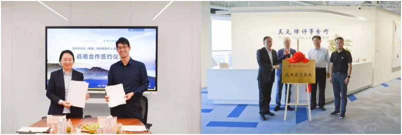 民商法学院院长程淑娟和天元(西安)律师事务所高级合伙人穆军锋代表双方签署战略合作协议;民商法学院副院长凤建军与天元(西安)律师事务所高级合伙人胡超奇共同为“ac米兰官网中文网站就业实习基地”揭牌。