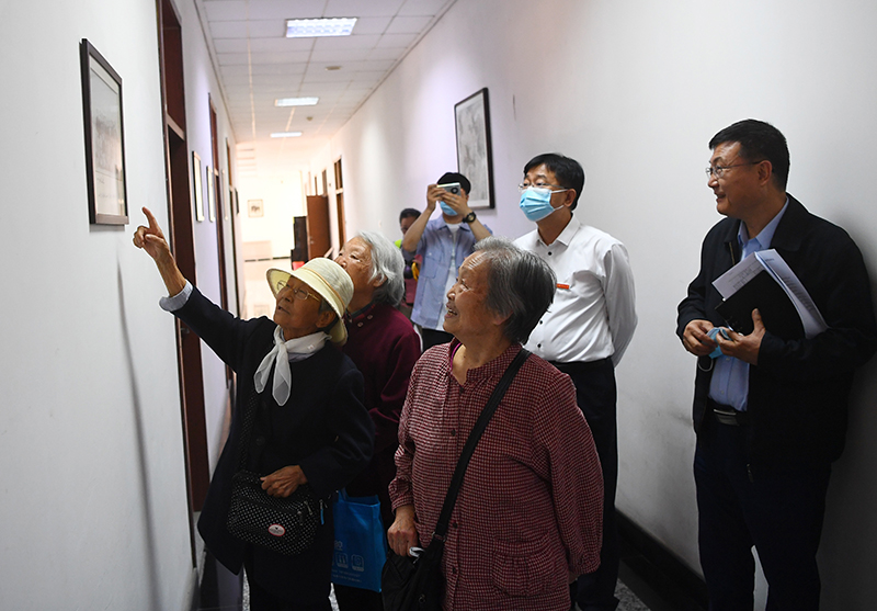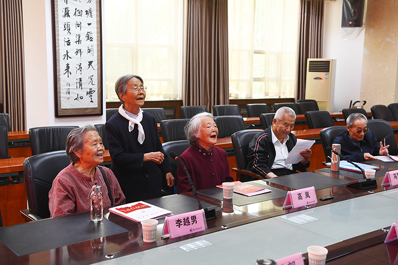 老校友们共同回忆了在西北人民革命大学求学和工作时的经历。情到深处,大家齐声高唱《西北人民革命大学毕业歌》:“同志们,新中国的建设担在我们双肩,背起背包,逐梦向前……”这一幕让所有与会人员红了眼眶。
