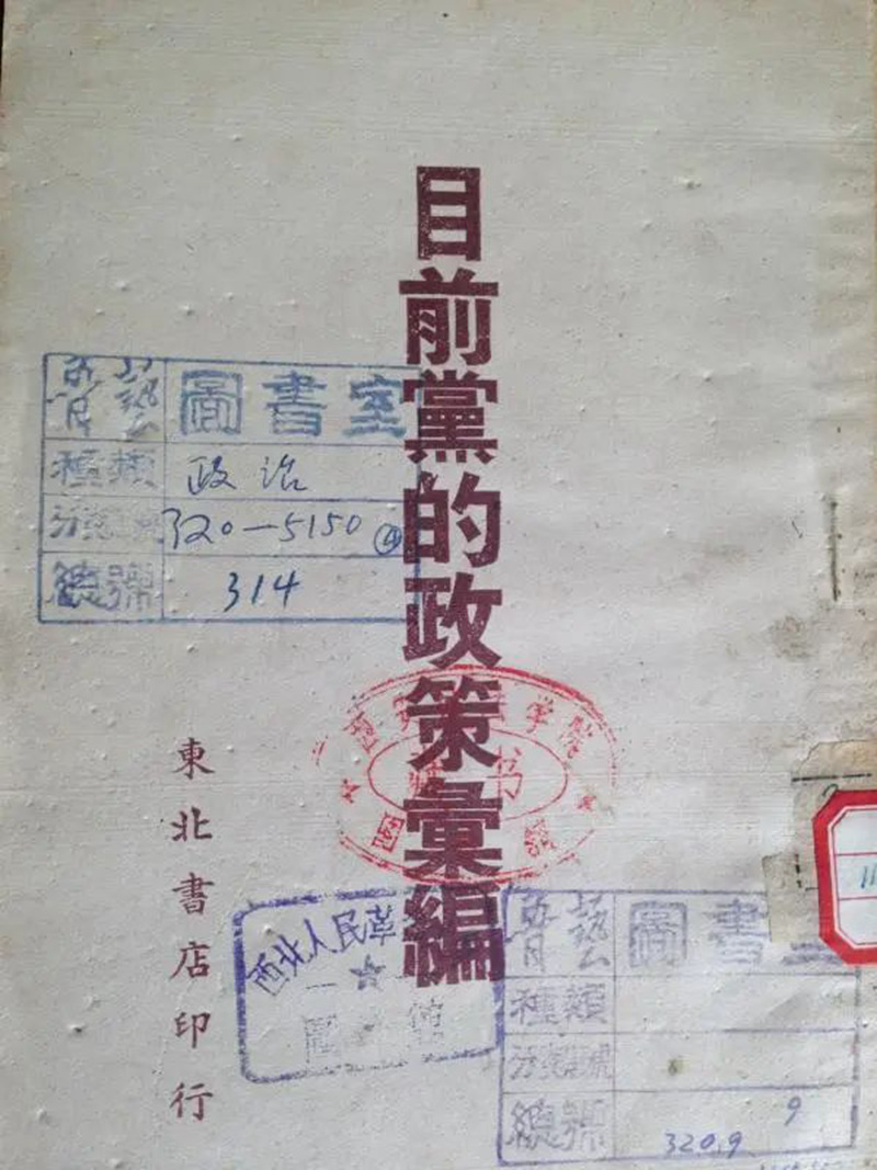 ▲同时加盖鲁艺图书室、西北人民革命大学、西安政法学院藏书章图书