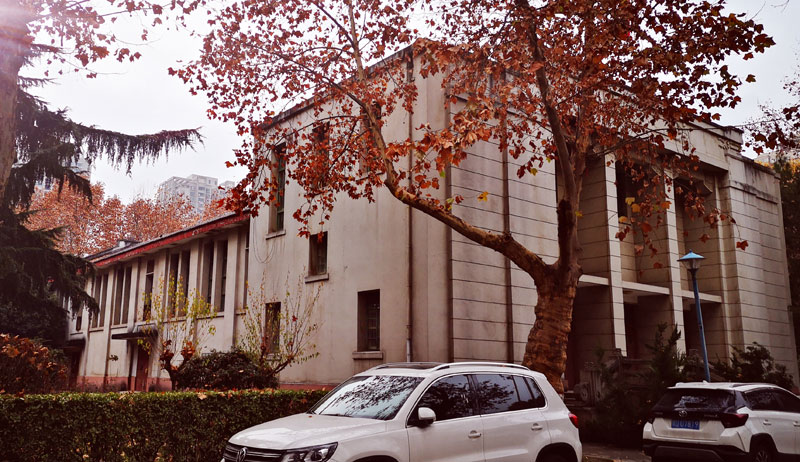 大礼堂位于行政楼后面,在学校中轴线上。同时期建筑现在也仅剩位于操场后面的中楼,中楼是一座典型的“凹”字型三层建筑,以至于刚来西安时很多同学还以为“中楼”即“钟楼”而讶异不已。根据学校上报给司法部资料显示,大礼堂建于1953年,总面积1279.08平米,砖混结构,层高2层,总造价181223.20元。学校档案也显示,建校工作实际从1952年就开始选址、规划和建筑设计,西安市建设局规划建设、西北局批准划定在西安市南郊八里村以南建设校区,大礼堂为首批建设项目。