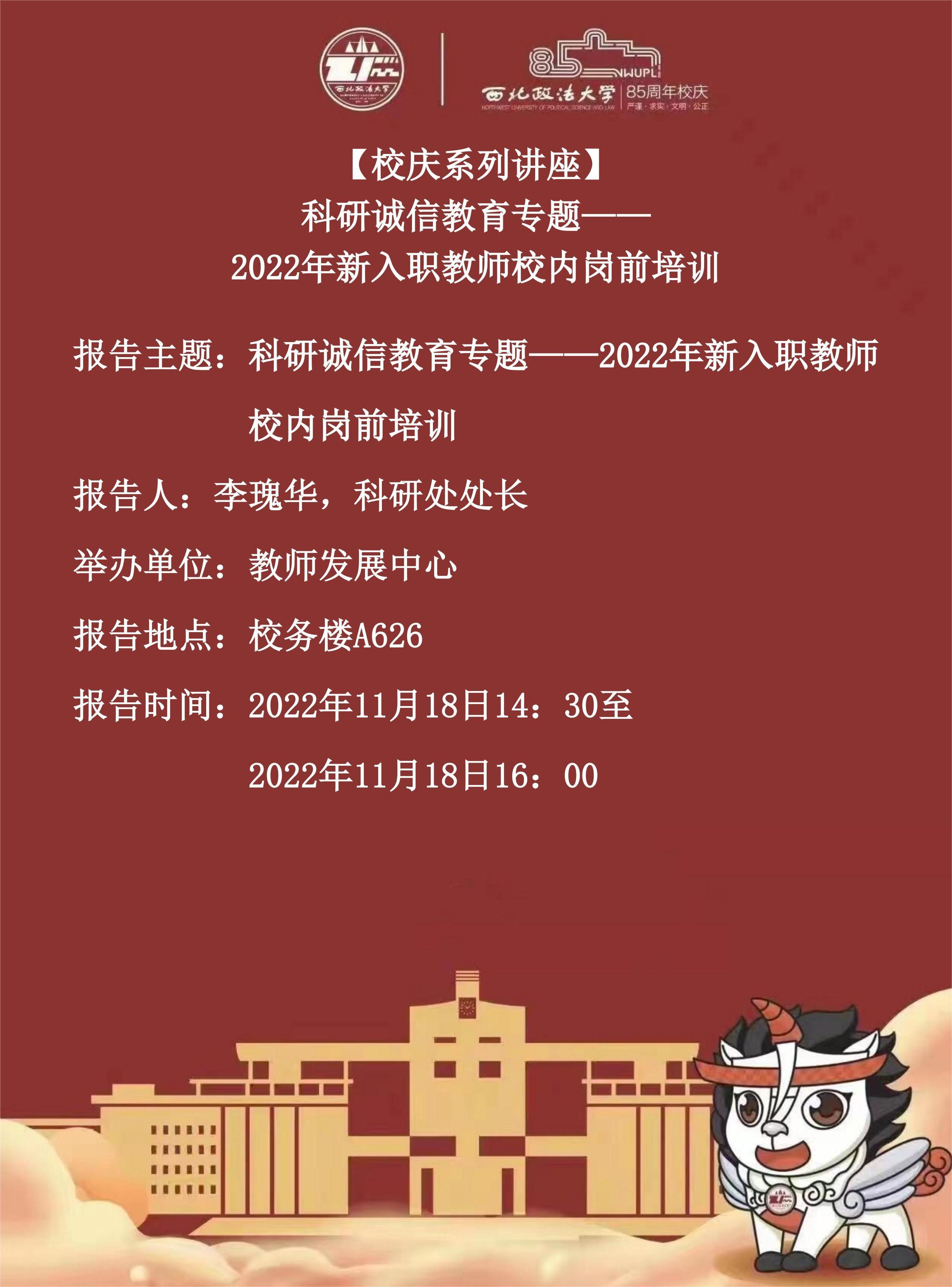 【校庆系列讲座】科研诚信教育专题——2022年新入职教师校内岗前培训