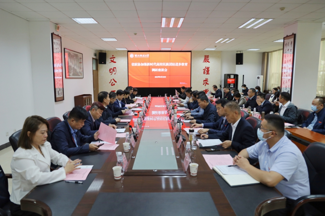 5月23日,陕西省政协副主席李兴旺一行来校围绕“加强新时代高校民族团结进步教育”开展专题调研。校党委副书记、校长范九利代表学校汇报工作,校党委副书记郭武军主持会议。