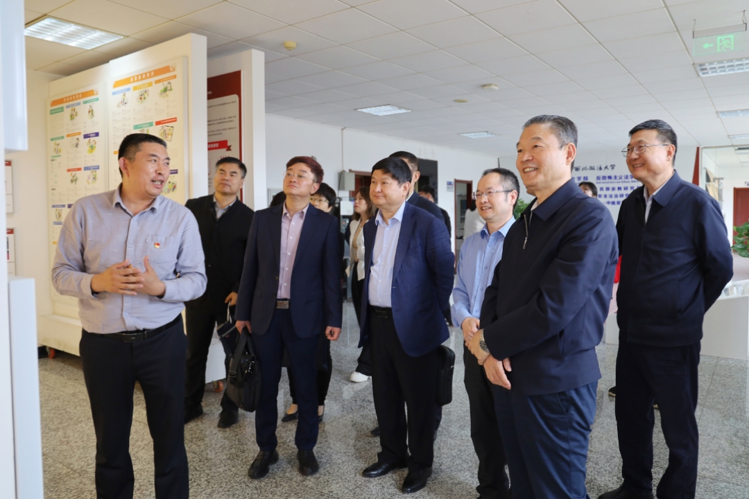 座谈会前,调研组一行参观了学校校史馆、国家安全学院(反恐法学院)智库成果展和反恐教学馆,观看了学校开展民族团结进步教育的宣传片。