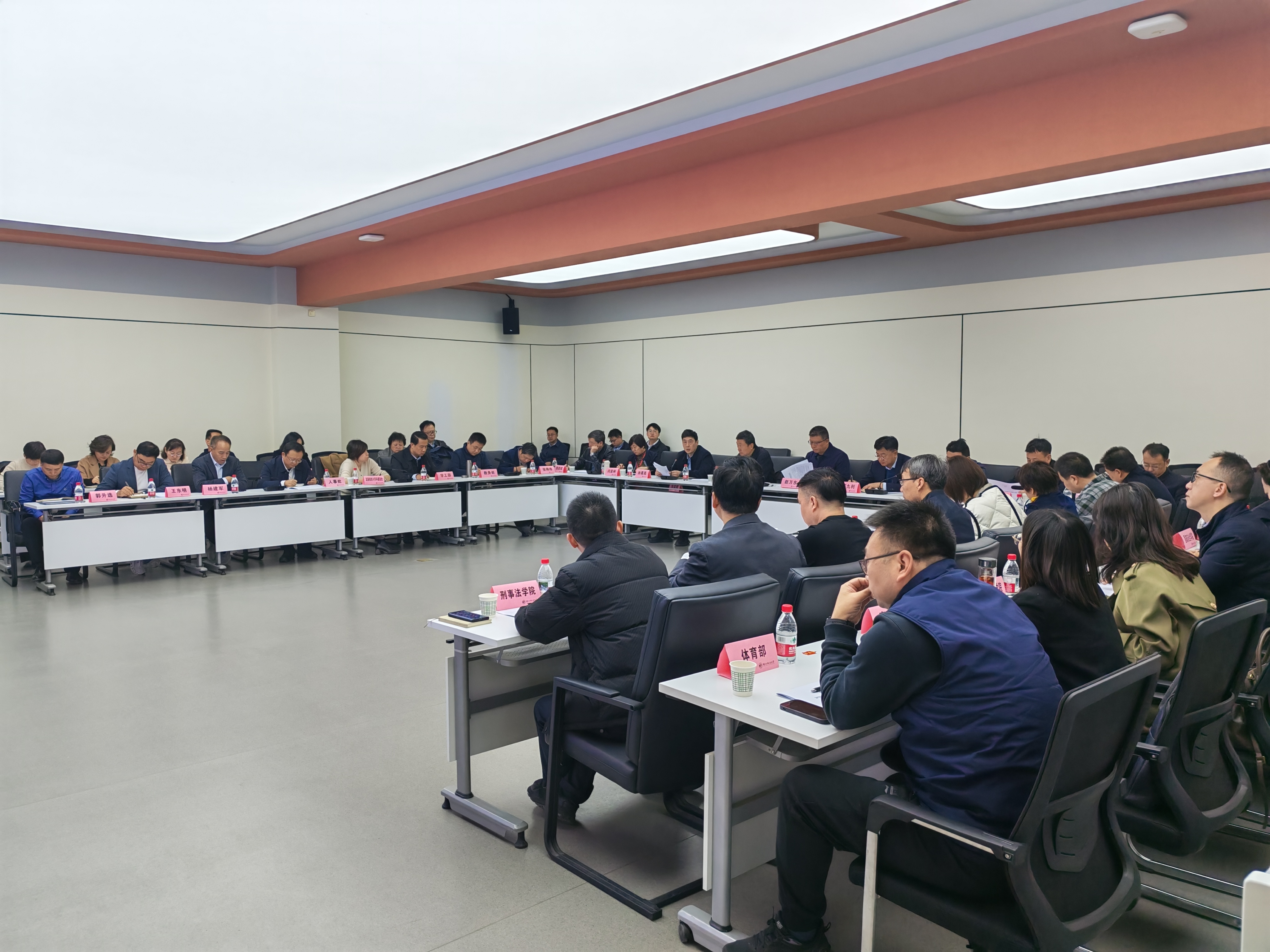 与会人员集体听课,对课堂教学情况进行了巡查。经济学院、国际法学院(国际仲裁学院)、政治与公共管理学院、公安学院(公共安全法学院)负责人分别就学院本科教学工作的亮点、举措与成效等进行了交流汇报。督导专家组组长闫亚林,副组长张宏斌、张师伟分别就试卷核查、课堂教学及毕业论文核查通报了相关的反馈意见。