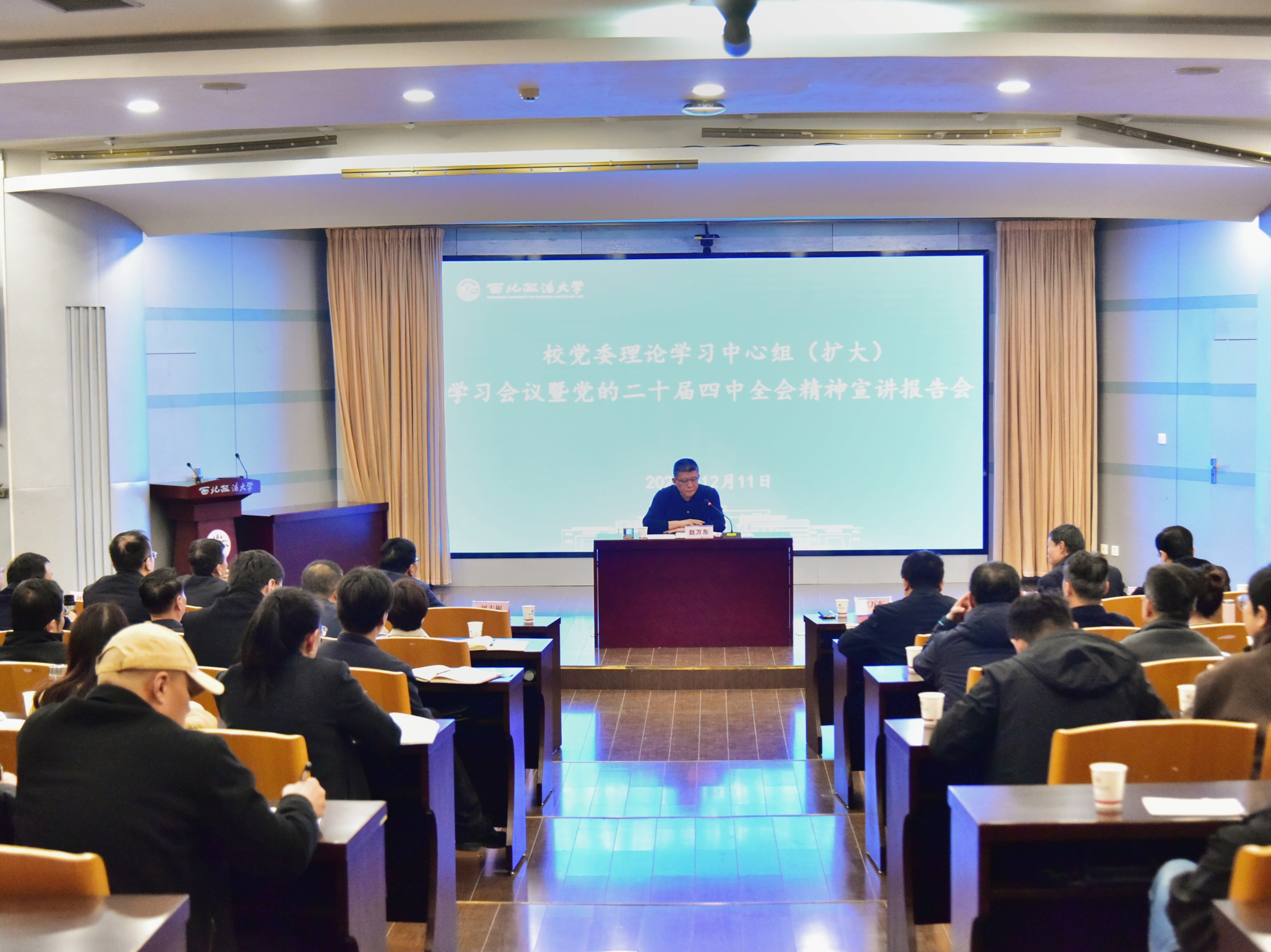12月11日,校党委理论学习中心组(扩大)学习会议在长安校区校务楼二楼报告厅召开。校党委书记赵万东以《学深悟透党的二十届四中全会精神 为教育强国建设做出新贡献》为题,宣讲党的二十届四中全会精神。