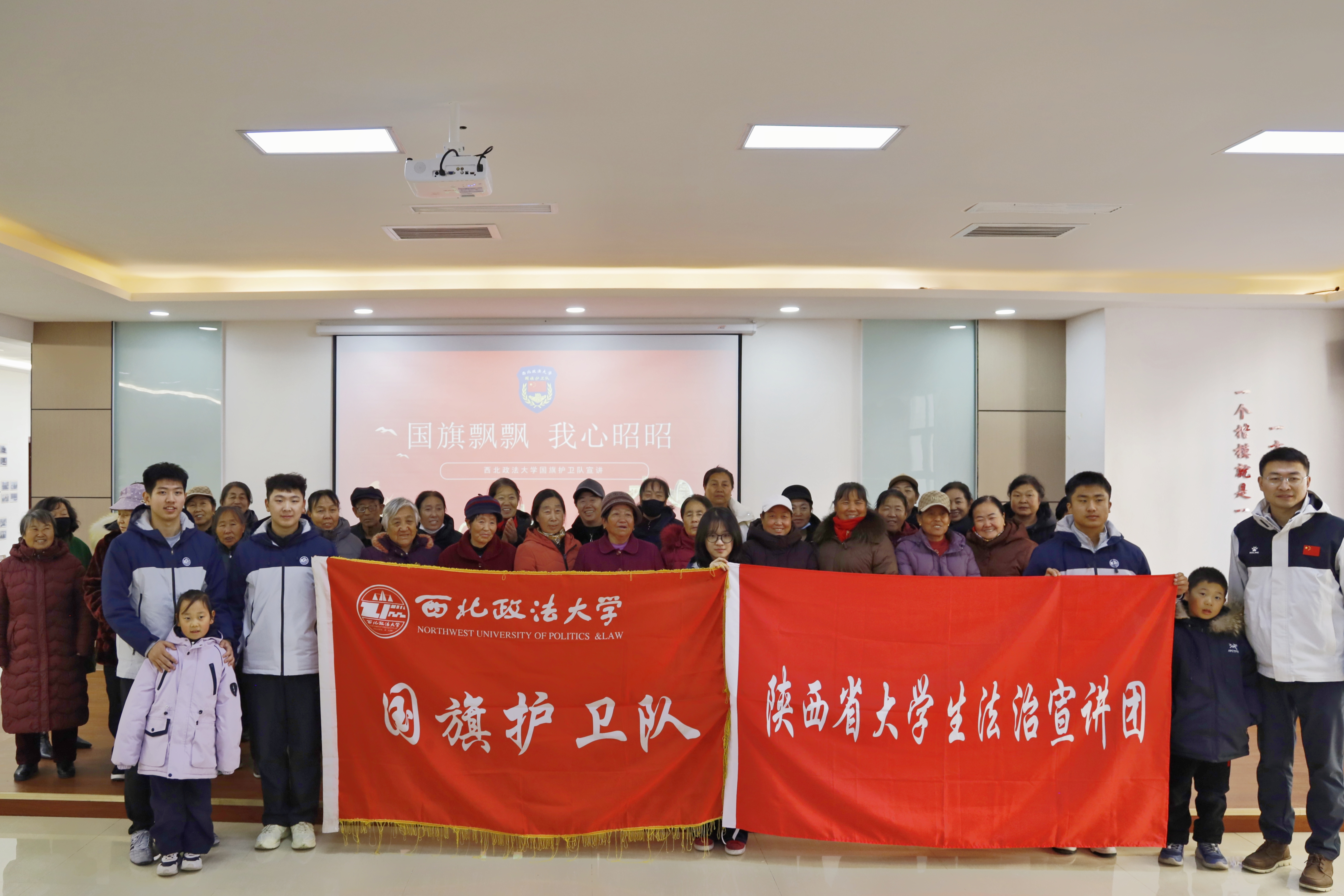 在延安期间,公安学院(公共安全法学院)“先锋”法治文化宣讲团走进延安市宝塔区贵人峁社区党群服务中心,开展以“国旗尊严,法治守护”为题的爱国主义法治教育宣讲,将红色基因与法学专业特色深度融合,以实践践行服务社会的使命担当。