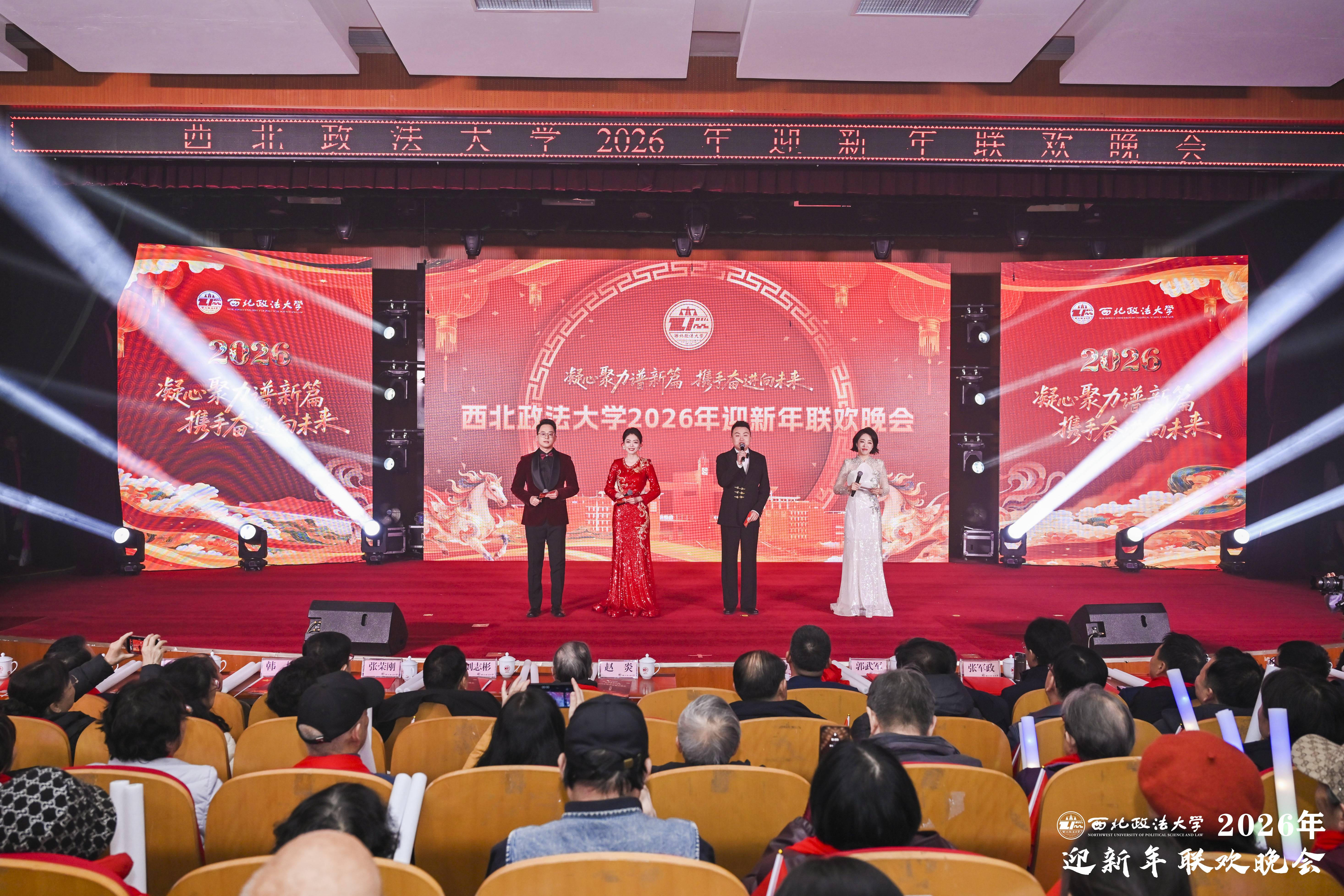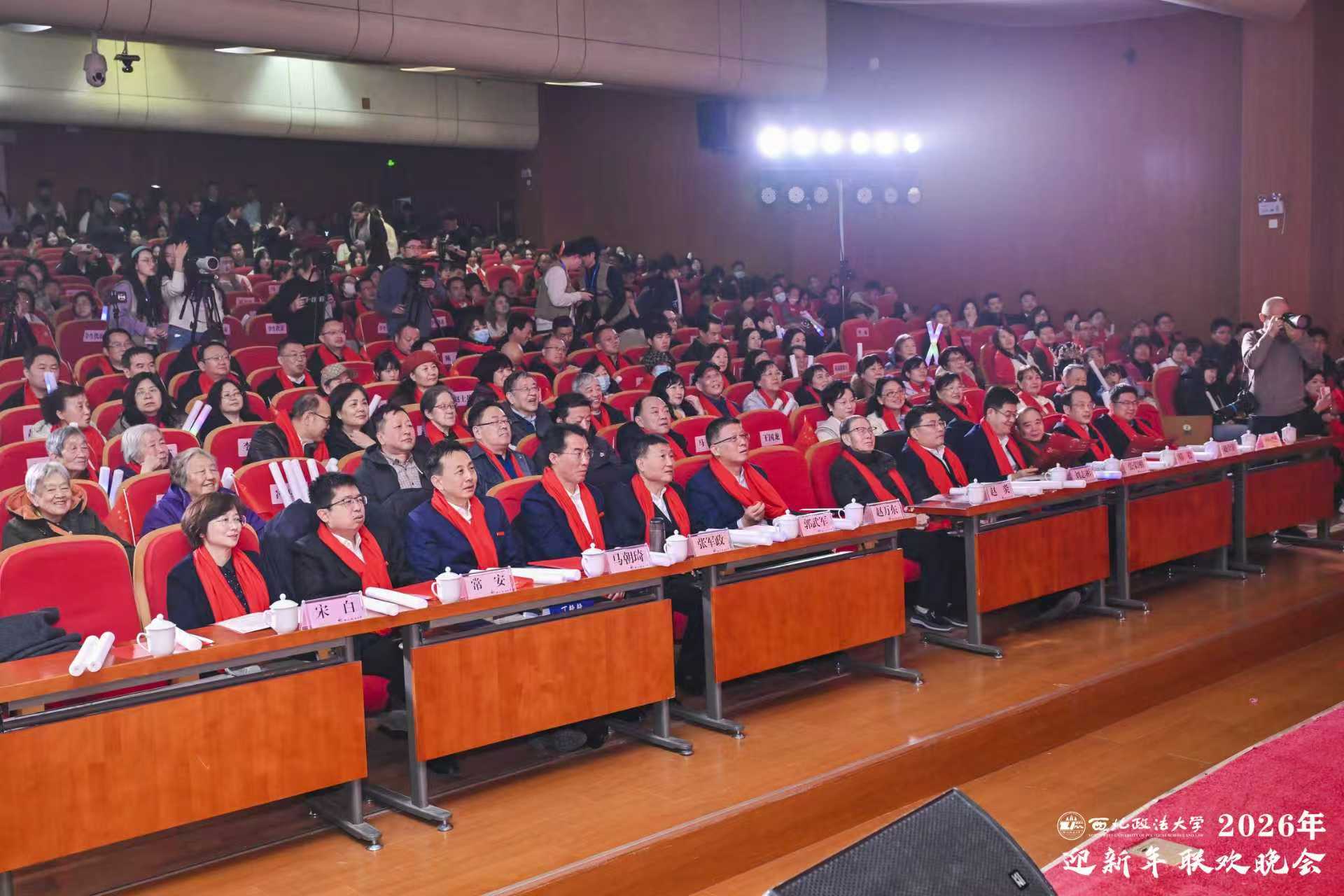 法韵悠长,共贺新岁;初心如炬,照亮新程。12月28日晚,ac米兰官网中文网站“凝心聚力谱新篇 携手奋进向未来”2026年迎新年联欢晚会在长安校区满天星学术报告厅举行。校党委书记赵万东等校领导和校党委委员出席活动,与师生代表欢聚一堂,共同迎接新年的到来。