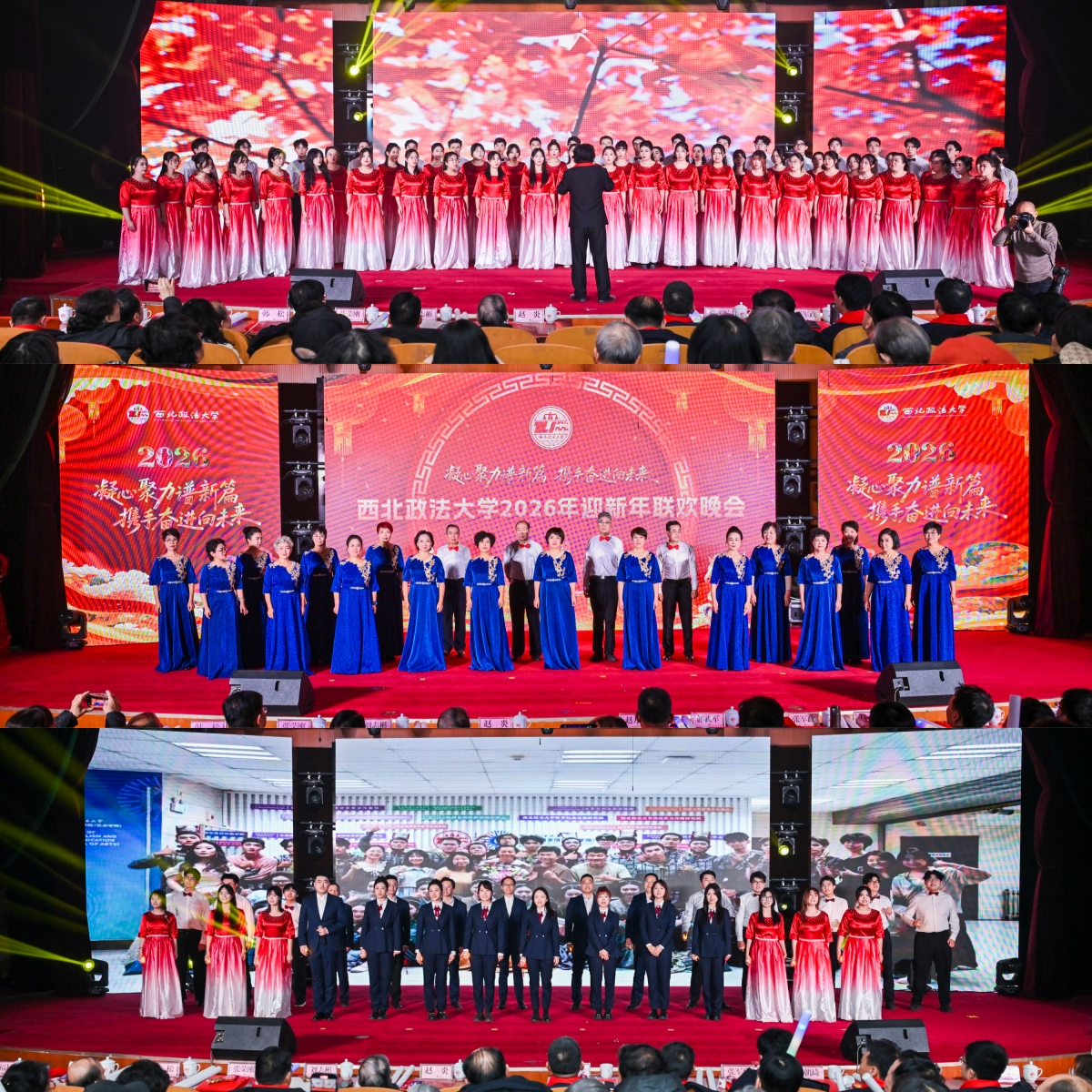 诗朗诵《根脉与征途:西法大八十八载答问》更是将晚会推向高潮,校领导们以真挚的情感、铿锵的语调,诉说了西法大栉风沐雨砥砺行、春华秋实满庭芳的发展历程与盈枝硕果,成为新年最深沉、最有力的序曲。