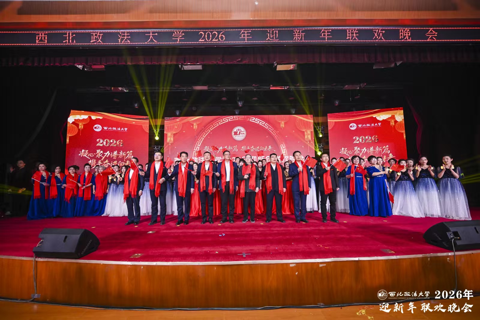 赵万东在致辞中结合自己作为“西法大新人”的感受谈到,一所好的大学,既要讲奋斗、讲敬业、讲效率,也要讲文化、讲生态,这场晚会正是“有温度的大学”该有的样子——在欢声笑语中增进理解,在情感共鸣中凝聚认同,形成以人为本的关怀文化、深度融合的育人体系、和谐共生的校园生态。