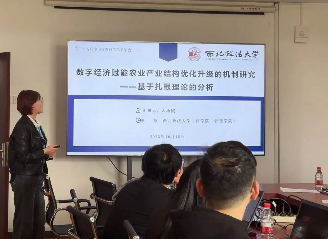 孟敏霞在“乡村振兴”分论坛以《数字经济赋能农业产业结构优化升级的机制研究——基于扎根理论的分析》为题进行学术汇报。