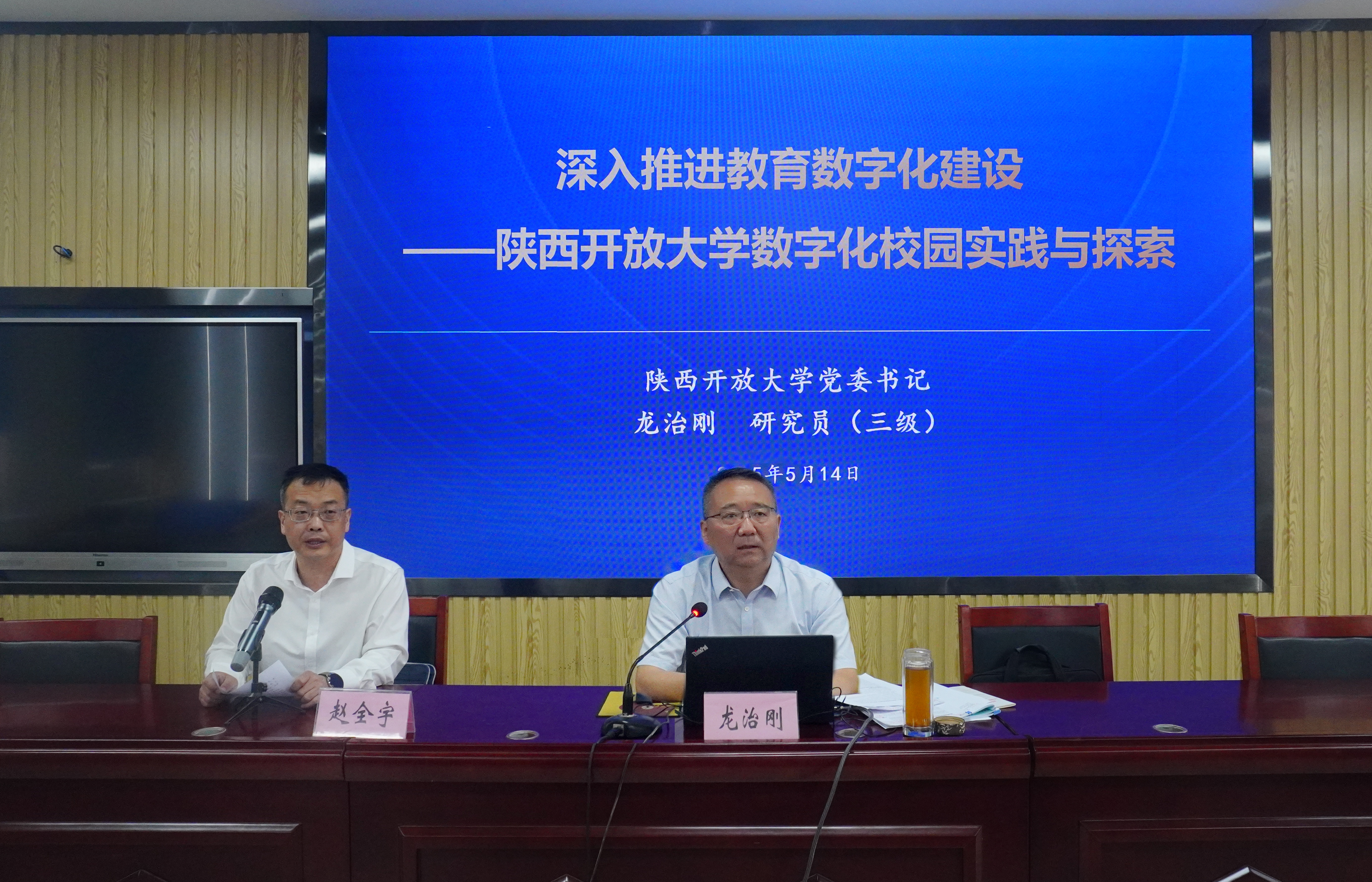 5月14日,学校邀请陕西开放大学党委书记、三级研究员龙治刚为学校年轻干部素质能力提升专题培训班(第一期)学员和相关职能部门负责人作题为《深入推进教育数字化建设》的专题辅导报告。校党委委员、副校长、组织部部长赵全宇主持报告会。