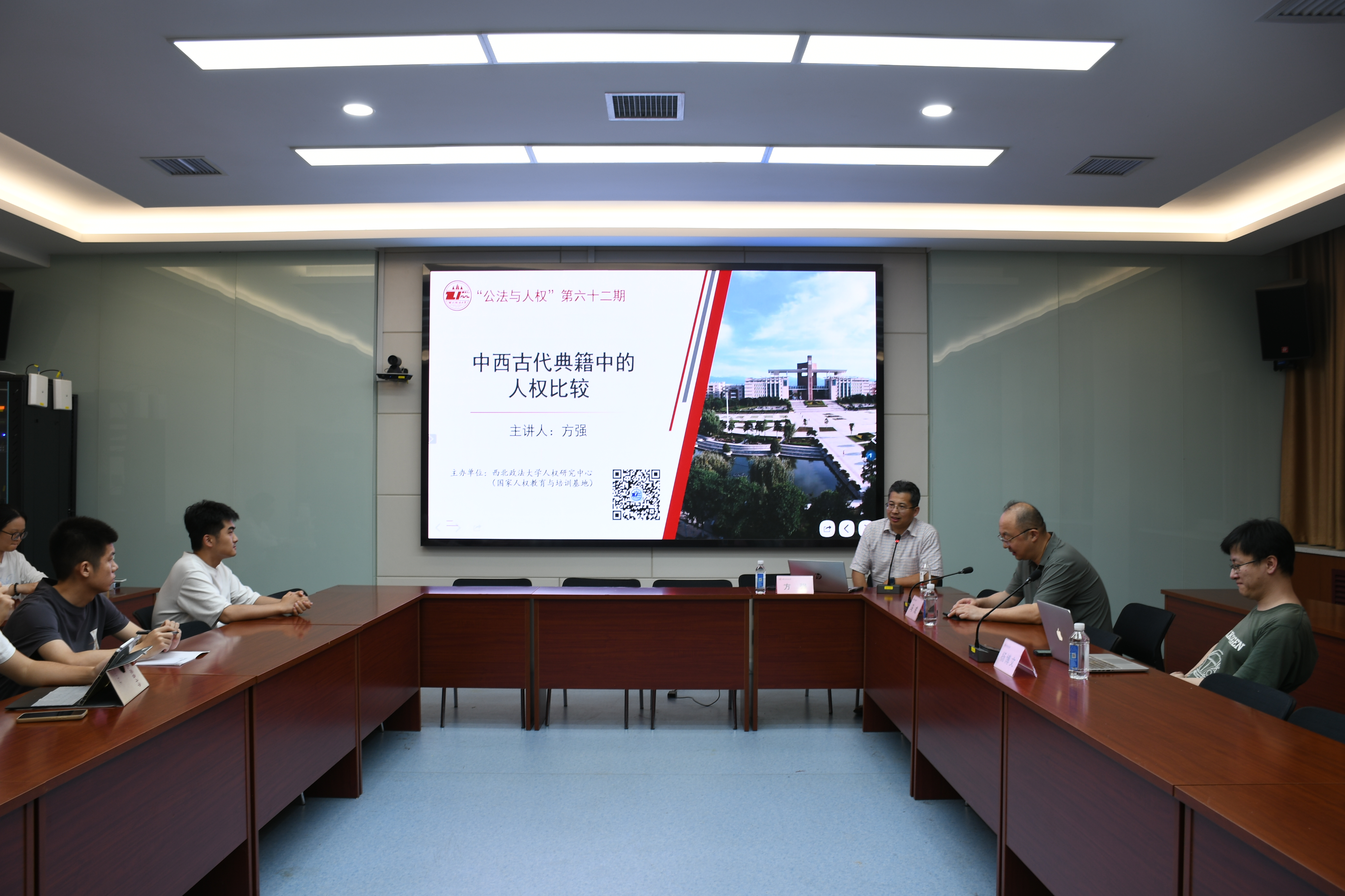 5月15日晚,由ac米兰人权研究中心主办的“公法与人权”讲坛第62期在雁塔校区人权研究中心会议室顺利举行。美国明尼苏达大学(德鲁斯校区)历史学教授、美国华人社会科学教授学会会长方强作题为《中西古代典籍中的人权比较》学术讲座,人权研究中心执行主任马成教授主持,杨博文博士与谈。