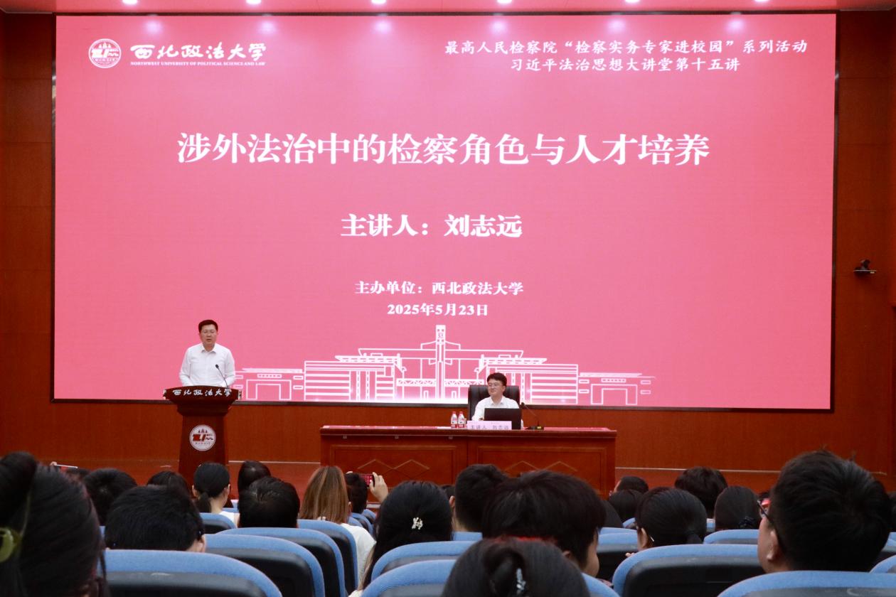 5月23日下午,由研究生院主办,检察公益诉讼研究中心(最高检检察公益诉讼研究基地)、刑事法学院协办的“最高人民检察院‘检察实务专家进校园’系列活动”暨“习近平法治思想大讲堂”在ac米兰雁塔校区人权研究中心报告厅顺利举行。最高人民检察院国际合作局局长刘志远作题为《涉外法治中的检察角色与人才培养》报告,校长范九利主持,陕西省人民检察院副检察长张克祯、郭洁教授与谈。