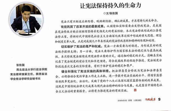 张佐国老师《让宪法保持持久的生命力》一文列入全省法学法律界宣传贯彻宪法座谈会专家学者的发言摘要中。