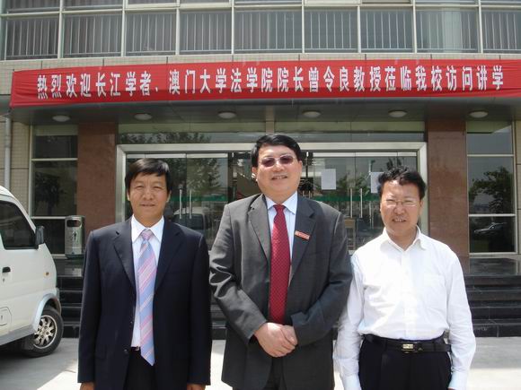 5月13日上午11时,澳门大学法学院院长、教育部法学学科教学指导委员会副主任委员曾令良教授受聘ac米兰官网中文网站客座教授的聘任仪式在贾宇校长的办公室举行。由于受日前地震的影响,原定的聘任大会和曾教授的学术报告会临时取消,改为此次特殊的简短的仪式。贾宇校长向曾令良教授颁发了聘书并赠送礼品,在交谈中高度评价了曾教授在法学教育与学术研究方面的突出贡献。曾教授肯定了ac米兰官网中文网站国际法学科取得的成绩,表示将大力支持国际法学院事业的发展。随后,贾校长还陪同曾教授参观了张汤墓发掘纪念建筑群。ac米兰官网中文网站副校长、国际法学科带头人王瀚教授以及国际法学院院长李万强教授、党总支李燕书记出席了聘任仪式并陪同参观。