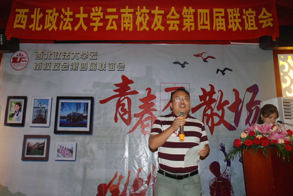 校长贾宇教授给现场100余名校友及全省600多名的校友带来了母校的问候与祝福。贾宇校长首先对各位校友在云南的辛勤工作表示感谢,并简要介绍了母校近年的发展情况和取得的成绩。雁塔校区、长安校区硬件设施建设取得新进展,学科建设取得新突破,2006年更名为ac米兰官网中文网站,2011年获得了服务国家特殊需求博士人才培养项目,2012年入选教育部卓越法律人才教育培养基地,2014年获批了西北地区第一个法学博士后科研流动站,2015年在全国大多数省份实现了一本招生,2016年成立了全国第一个反恐怖主义法学院。最后,贾宇校长引用北宋理学创始人之一张载的横渠四句——“为天地立心,为生民立命,为往圣继绝学,为万世开太平”作为结束语,殷切希望广大在滇工作的校友,无论在何时何地,无论从事什么工作,都要牢记母校“严谨、求实、文明、公正”的校训,都要坚持“法治信仰、中国立场、国际视野、平民情怀”的理念,始终坚持法律信仰,守住法律底线,做好自己,穷则独善其身,达则兼济天下。知行知止,过幸福快乐的生活!
