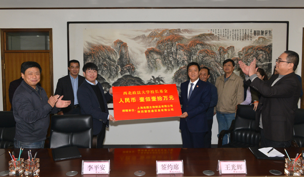 贾宇校长发表了热情洋溢的讲话。他首先代表学校对刘晓聪校友的捐资助学表示衷心的感谢。他指出学校先后培养的十余万校友在各行各业取得了优异的成绩,校友们在成就个人事业的同时,心系母校,以不同的方式为学校的发展提供了强有力支持。刘晓聪校友作为校友当中非常年轻的一名优秀代表,在艰辛创业有所成就后不忘母校的培养,慷慨捐资助学,为在校学生树立良好的榜样,必将更好地激励西法大学子全面学习和发展。贾宇校长强调,“学生领袖力提升计划”重点是对有潜质、有能力的学生进行重点培养,通过学习、交流、实践等活动,让他们开拓视野、培养自信、提升能力,实现综合素质全面发展。这个项目是学校人才培养工作中重要环节,刘晓聪校友资助该项目,必将产生良好的示范效应。他希望有关单位对于刘晓聪校友的捐资使用做出合理规划,使其发挥出最大效能。最后贾宇校长希望今后上海亮靓生物制品有限公司、陕西慧恒通贸易有限公司与ac米兰官网中文网站在人才培养、就业实习、创新创业等方面加强深度合作,共同开创校企合作共赢的良好局面。