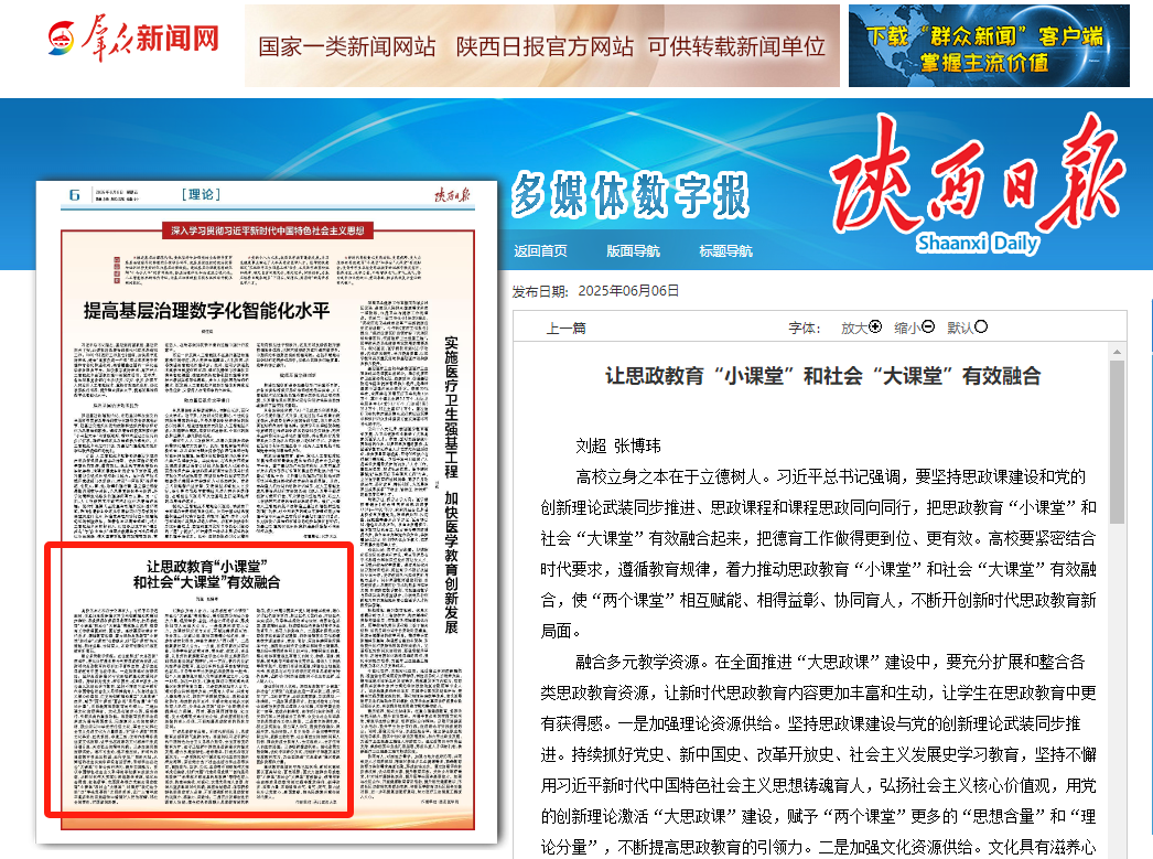 【陕西日报】让思政教育“小课堂”和社会“大课堂”有效融合 https://esb.sxdaily.com.cn/pc/content/202506/06/content_908789.html