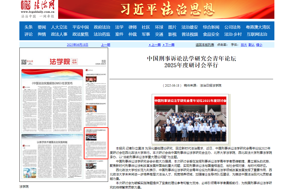 【法治日报】中国刑事诉讼法学研究会青年论坛 2025年度研讨会举行 http://epaper.legaldaily.com.cn/fzrb/content/20250618/Articel09006GN.htm?spm=zm1012-001.0.0.5.RtCPRy