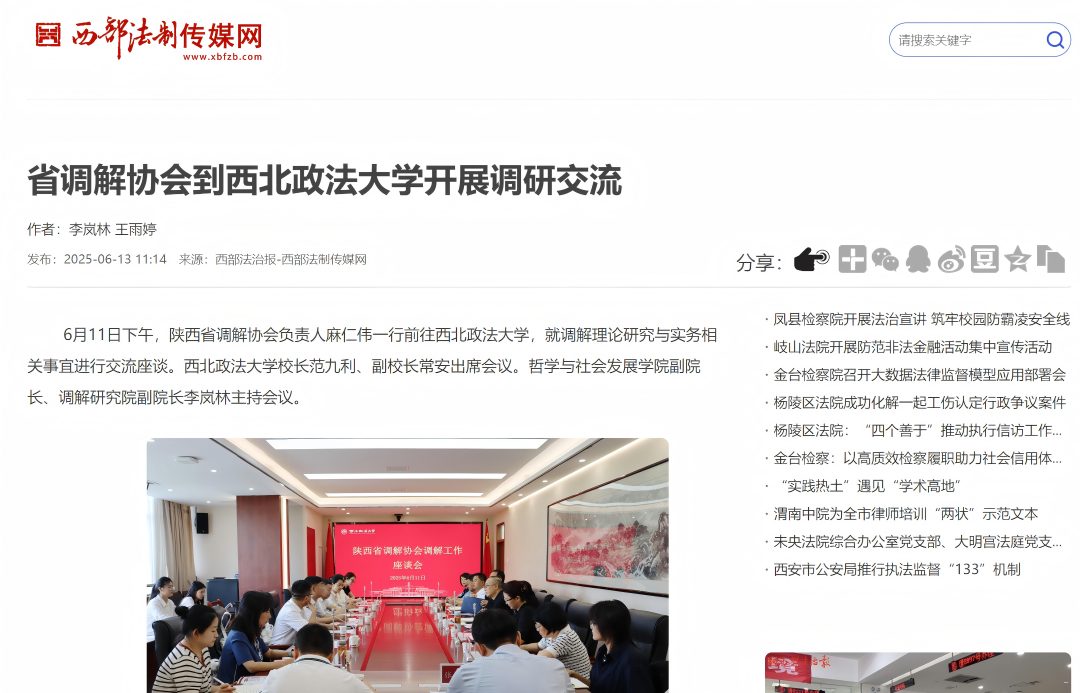 【西部法制传媒网】省调解协会到ac米兰官网中文网站开展调研交流 https://www.xbfzb.com/2025-06/13/content_11211107.html