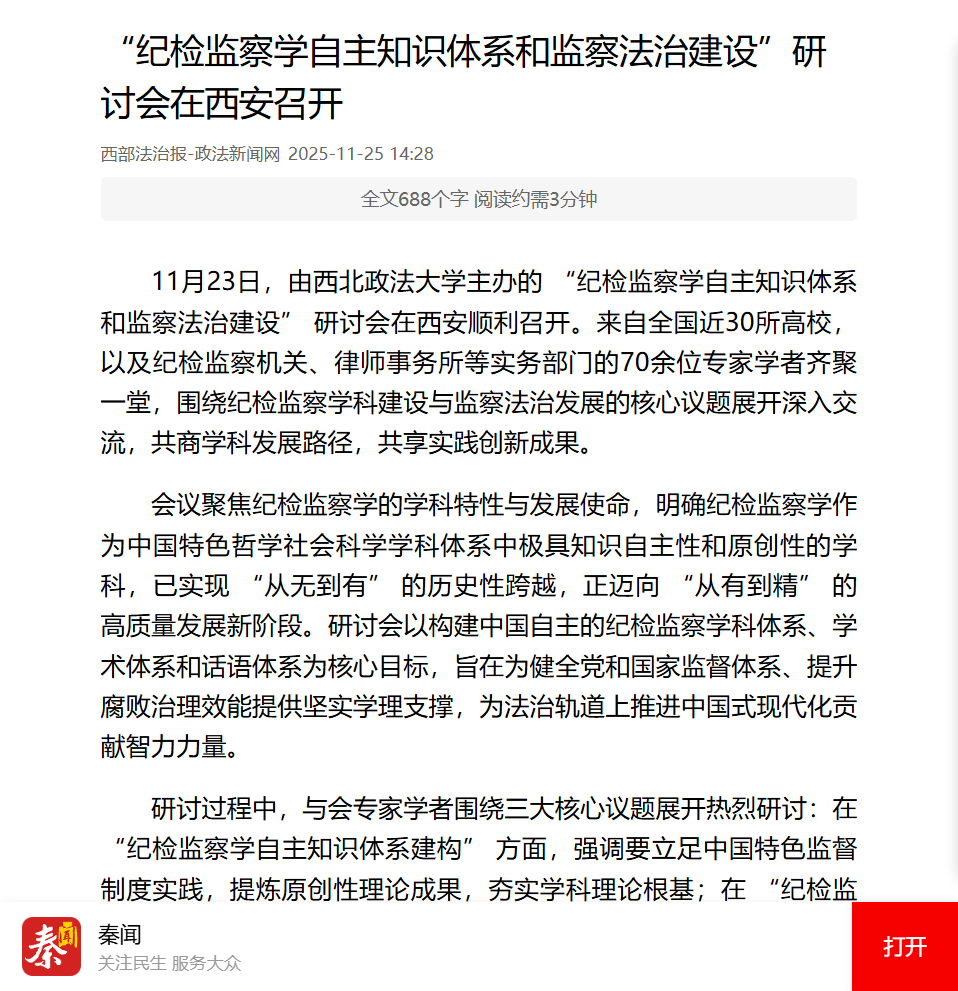 【西部网】“纪检监察学自主知识体系和监察法治建设”研讨会在西安召开http://m.cnwest.com/jyzx/a/2025/11/25/23243603.html