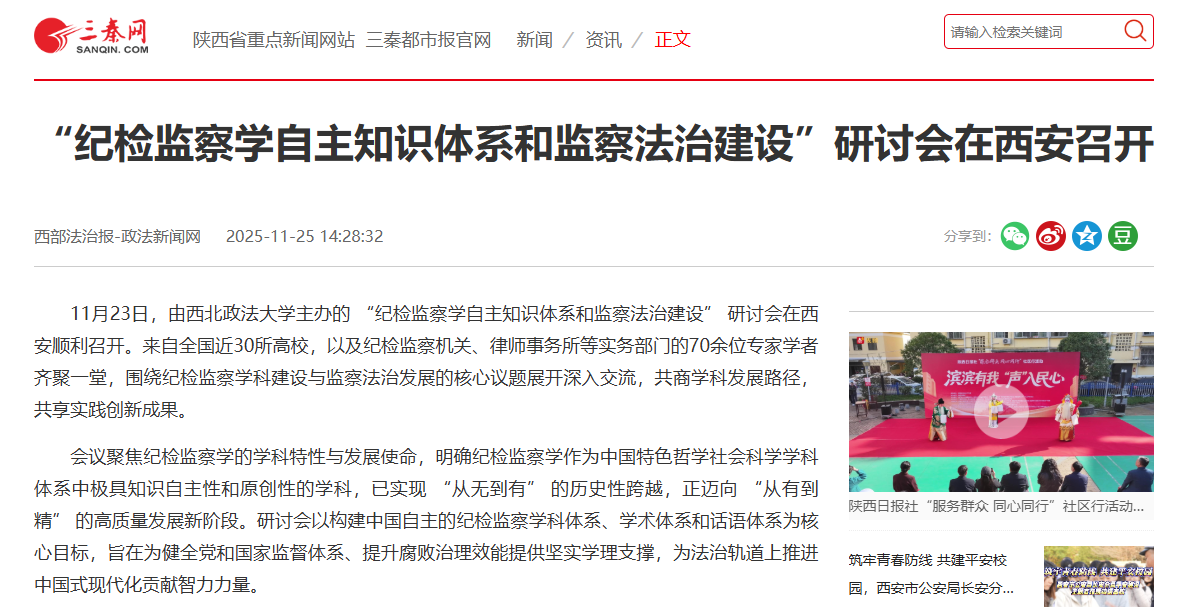 【中国日报网】“纪检监察学自主知识体系和监察法治建设”研讨会在西安召开https://shx.chinadaily.com.cn/a/202511/25/WS69251ebaa310942cc499328a.html