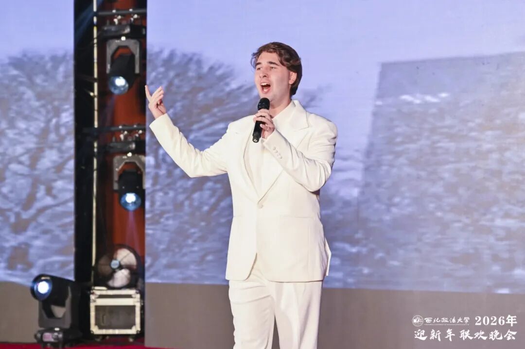 下篇“薪火相传”承载传承使命,以信仰为炬续写奋进篇章。校内多位教师联袂登台完成歌曲串烧,国际教育学院留学生带来《来自故乡的礼物》歌舞串烧,展现多元文化交融活力;新闻传播学院师生共同唱响《朋友》《世间始终你好》,该院学生表演的舞蹈《俑生俑世》极具文化张力;校领导班子成员同台朗诵《根脉与征途:西法大八十八载答问》,深情回顾学校八十八年办学历程,坚定表达坚守法治初心、深耕育人事业的信念。随后,新闻传播学院师生带来独唱《先驱》,激昂的歌声引发全场共鸣。晚会在全体人员齐唱校歌的庄严旋律中圆满落幕。