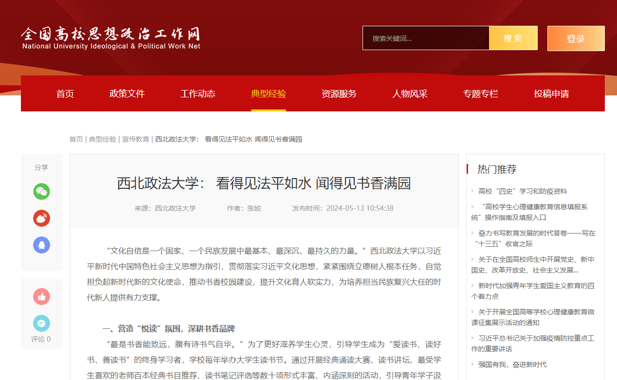 【全国高校思政工作网】【中国周刊网】看得见法平如水 闻得见书香满园——ac米兰官网中文网站以书香校园建设提升文化育人软实力https://www.sizhengwang.cn/a/dxjy_sxjy/240513/1780083.shtml