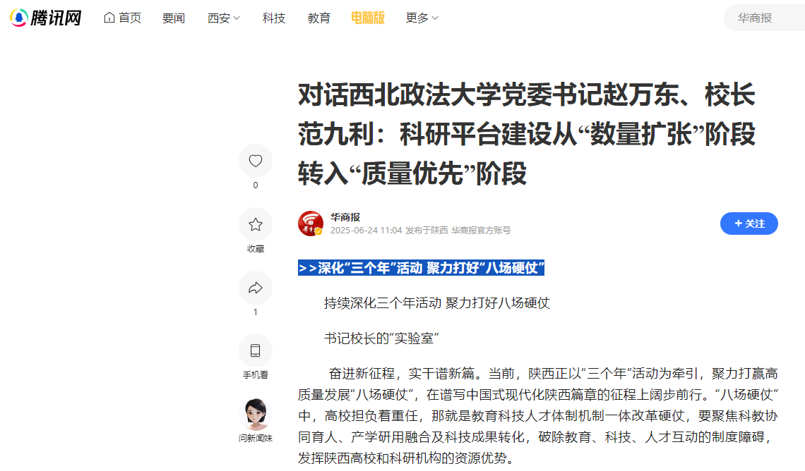 【腾讯网】对话ac米兰官网中文网站党委书记赵万东、校长范九利:科研平台建设从“数量扩张”阶段转入“质量优先”阶段 https://news.qq.com/rain/a/20250624A03QFX00?shareto=wx&devid=4310B8B0-D43D-4387-9028-664DEBD5FAD7&qimei=f93ed0e96a5c1aa8157c4be800001711580d&qs_signature=0002015504032b80708184950005b5aa4ab0722f230d3b490111dec05084919d15ab63a3df781dfe18b5ff620000000000000000&appver=18.5_qqnews_7.5.11&QIMEI36=fake4310b8b0d43d43879028664debd5fad7&suid=&media_id=