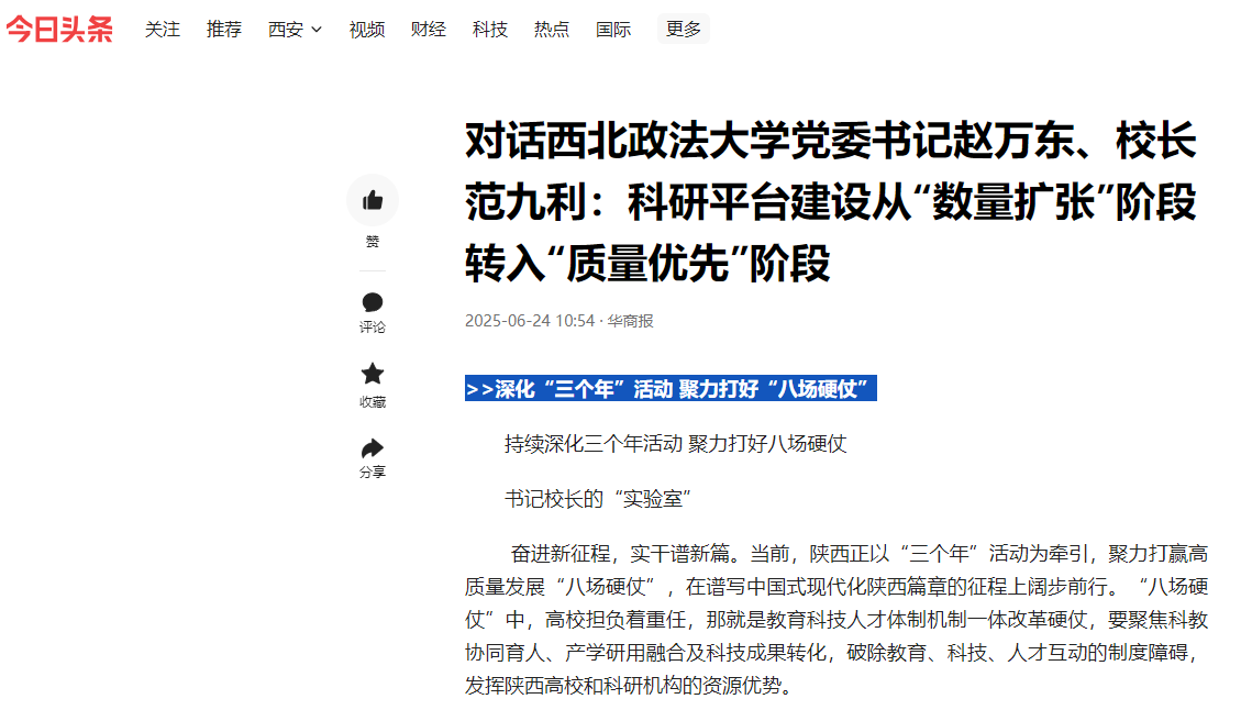 华商报:陕西提出以“八场硬仗”推动高质量发展,学校在“十四五”收官与“十五五”谋划的关键节点,如何将服务全省攻坚任务纳入中长期发展规划?